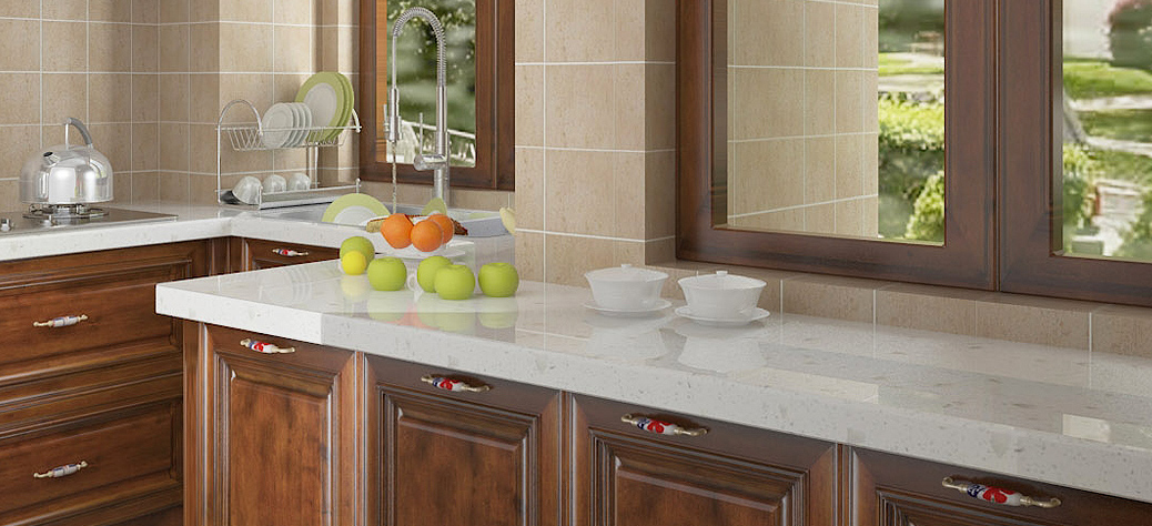 3. Cut vegetables on a cutting board, not on artificial stone countertops. Do not allow heavy or sharp objects to directly impact the surface, and do not use hot water immediately after rinsing with cold water to avoid leaving traces. If the water stays on the artificial stone countertop for a long time (because the water contains a large amount of bleach and scale), it will form stubborn dirt, which will make the countertop color lighter and affect the appearance. The surface should be dried as soon as possible, heated with a hair dryer or dried with a surface 600-1200 Wipe with water-milled paper, spray with brightener after drying. Small white marks can be moistened with edible oil and a dry cloth to gently wipe the surface.