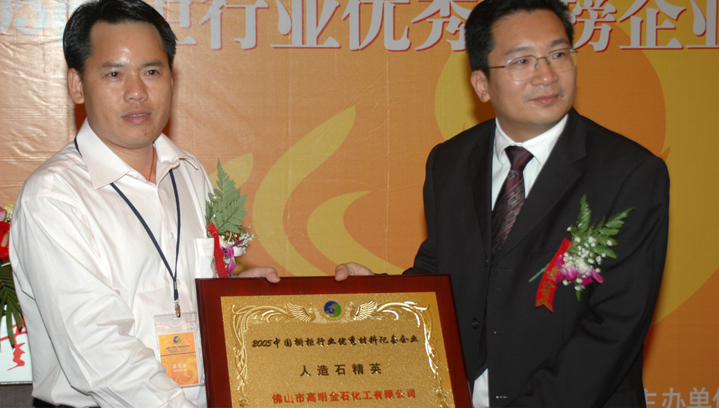 金石榮獲——中國(guó)櫥柜行業(yè)優(yōu)秀材料配套企業(yè)人造石精英大獎(jiǎng) 2005-11-10 點(diǎn)擊: